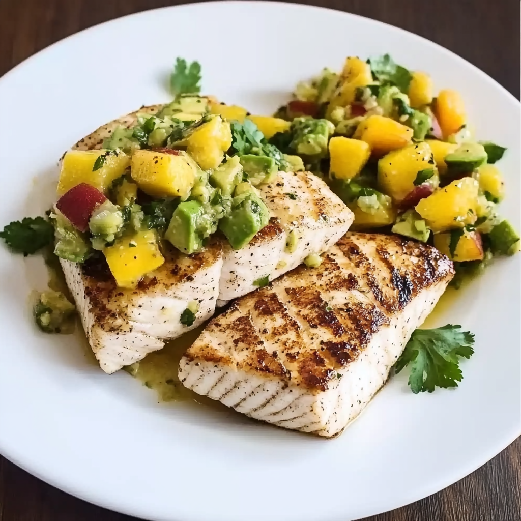 Grilled Mahi Mahi with Grilled Avocado Peach Salsa